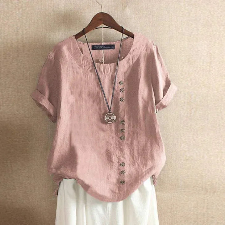 Minimaliste mais pleine de charme, la blouse Nadine séduit par sa coupe asymétrique et ses détails discrets. Conçue dans un tissu doux et fluide, elle accompagne vos mouvements avec légèreté et élégance. Facile à associer, elle est parfaite pour sublimer une tenue du quotidien avec une touche de raffinement naturel.