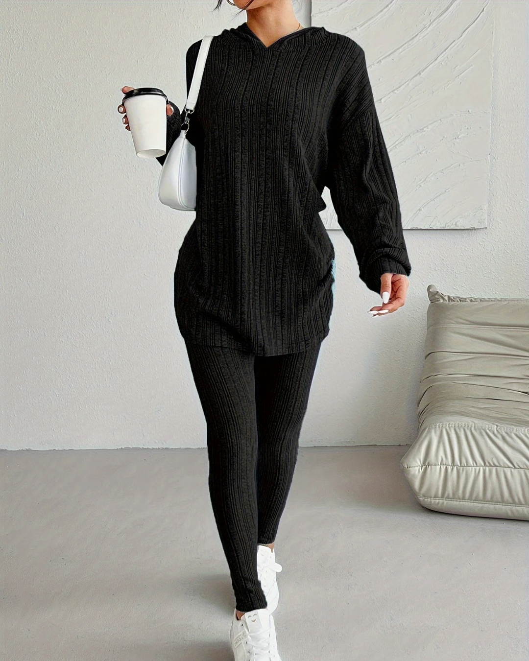 Un ensemble à capuche qui incarne le confort élégant. Avec sa coupe ample et son tissu côtelé doux, l'Ensemble Cendrine est parfait pour vos journées détente ou vos sorties décontractées. Il vous enveloppe de chaleur sans compromis sur le style.