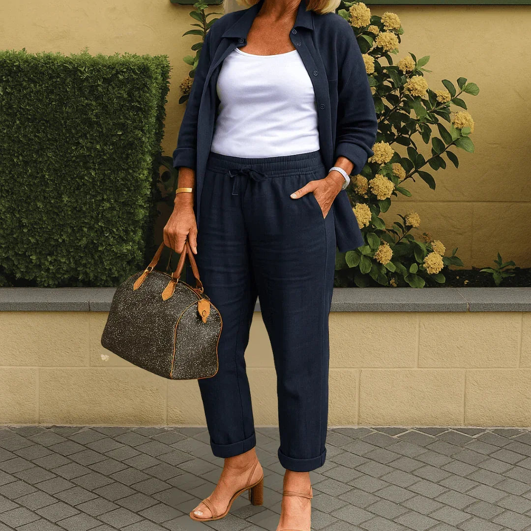 Conçu pour la femme moderne qui allie confort et sophistication, l’ensemble Isabeau offre une silhouette élégante et naturelle, idéale pour les journées fraîches du printemps ou les débuts d’automne.