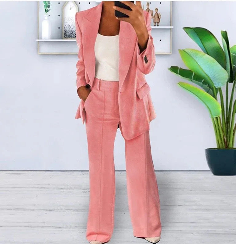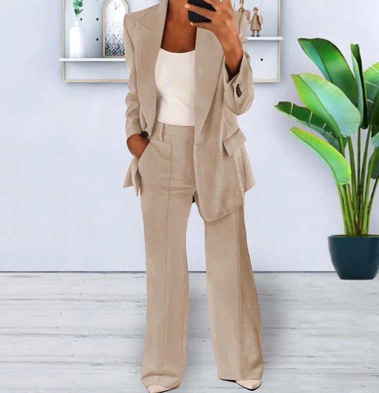 L'ensemble Vérane revisite le tailleur classique avec une touche de modernité et d’aisance. Conçu pour allier prestance et confort, il se compose d’une veste structurée à manches longues et d’un pantalon droit à taille haute. Sa coupe sobre et élégante en fait une pièce maîtresse pour les journées professionnelles, les réunions importantes ou les occasions où l’on souhaite imposer son style avec assurance.