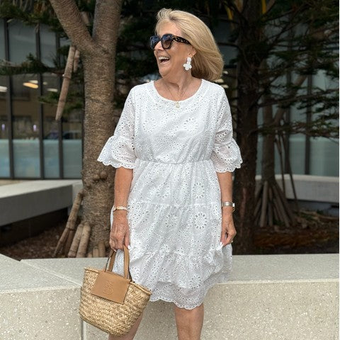 La Robe Alixane incarne le charme intemporel de la broderie blanche.