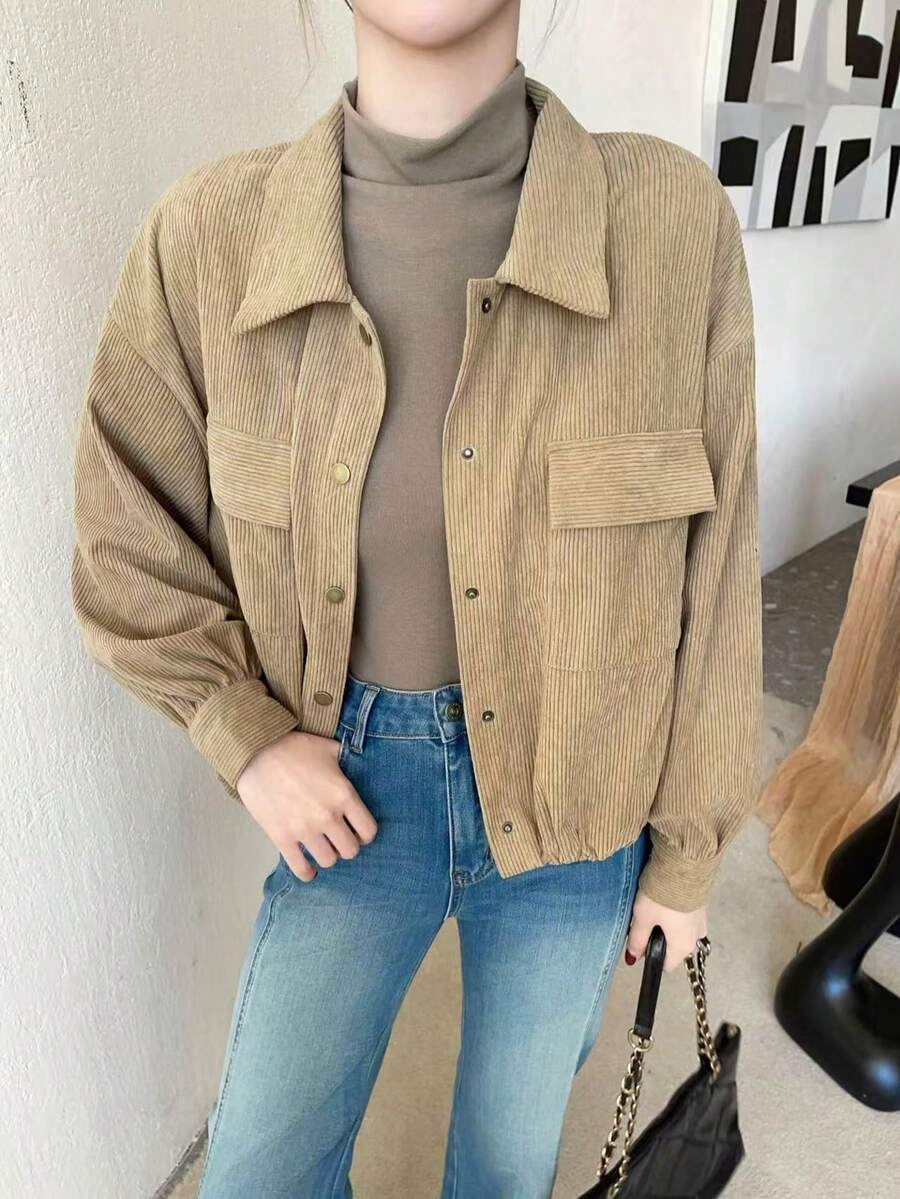 Conçue pour apporter douceur et élégance aux journées fraîches, cette veste en velours côtelé allie confort, modernité et sophistication naturelle. Sa texture délicate, sa coupe légèrement oversize et ses détails soigneusement travaillés créent une silhouette à la fois tendance et intemporelle.